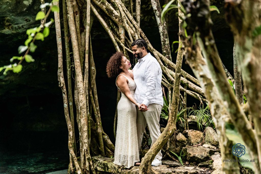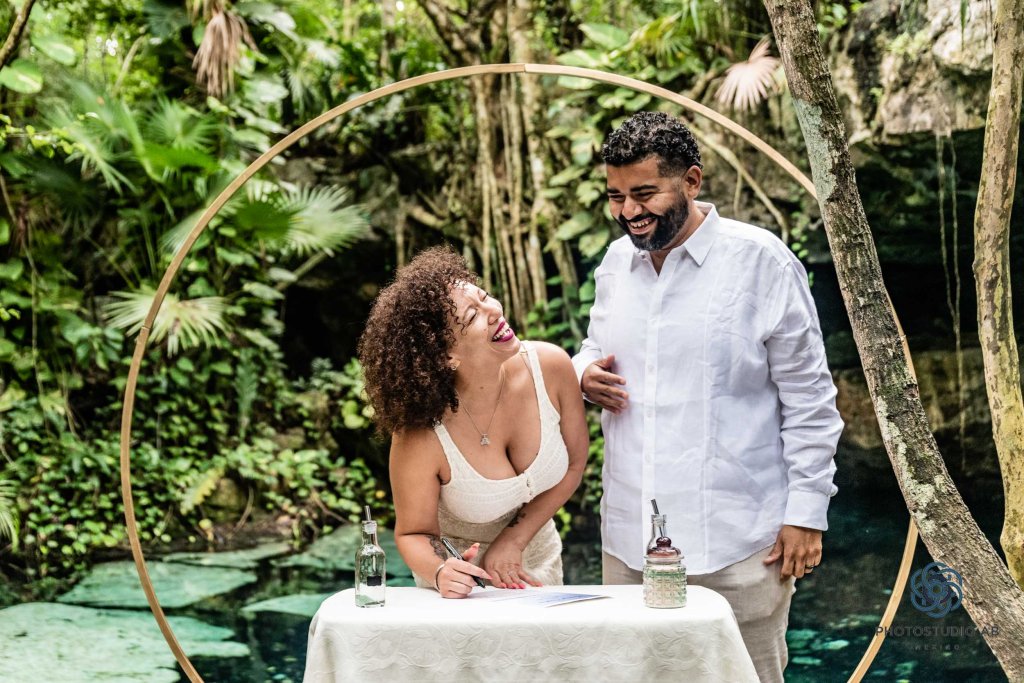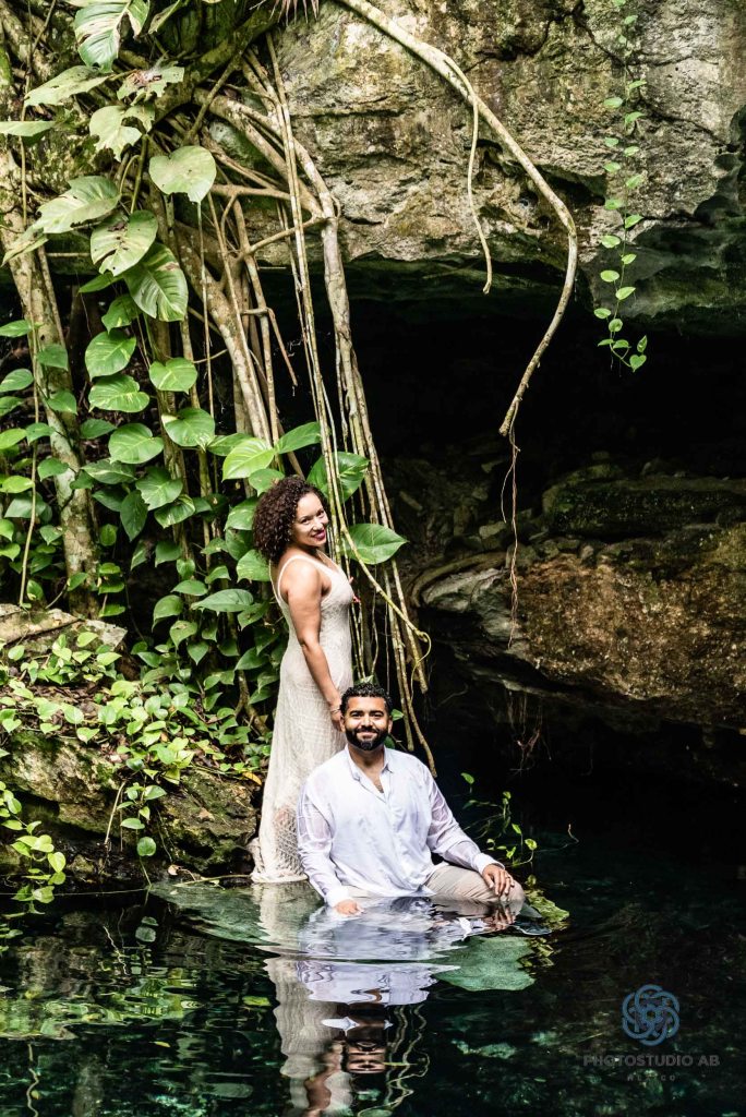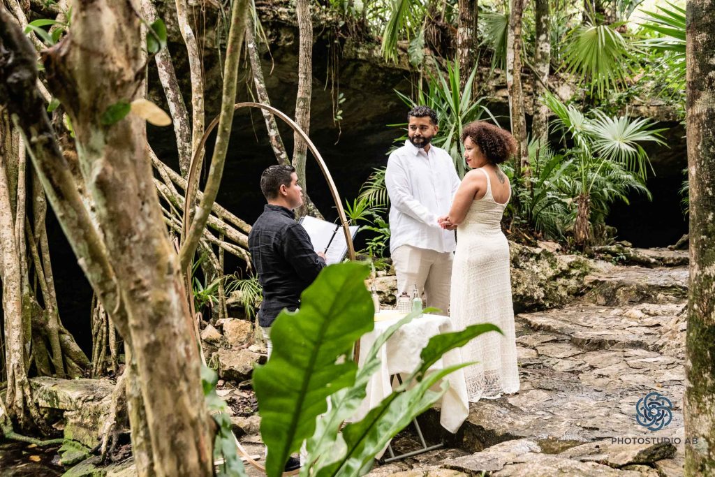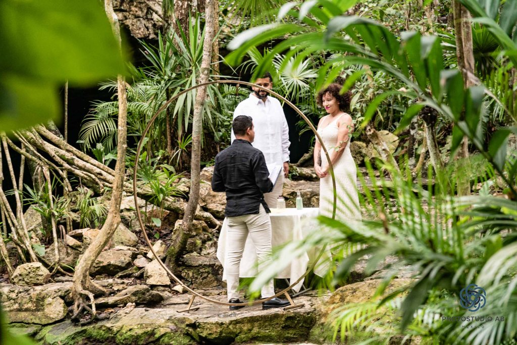 Cenote Bride and Groom ceremony with Trash the dress