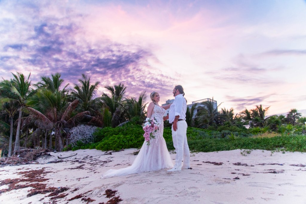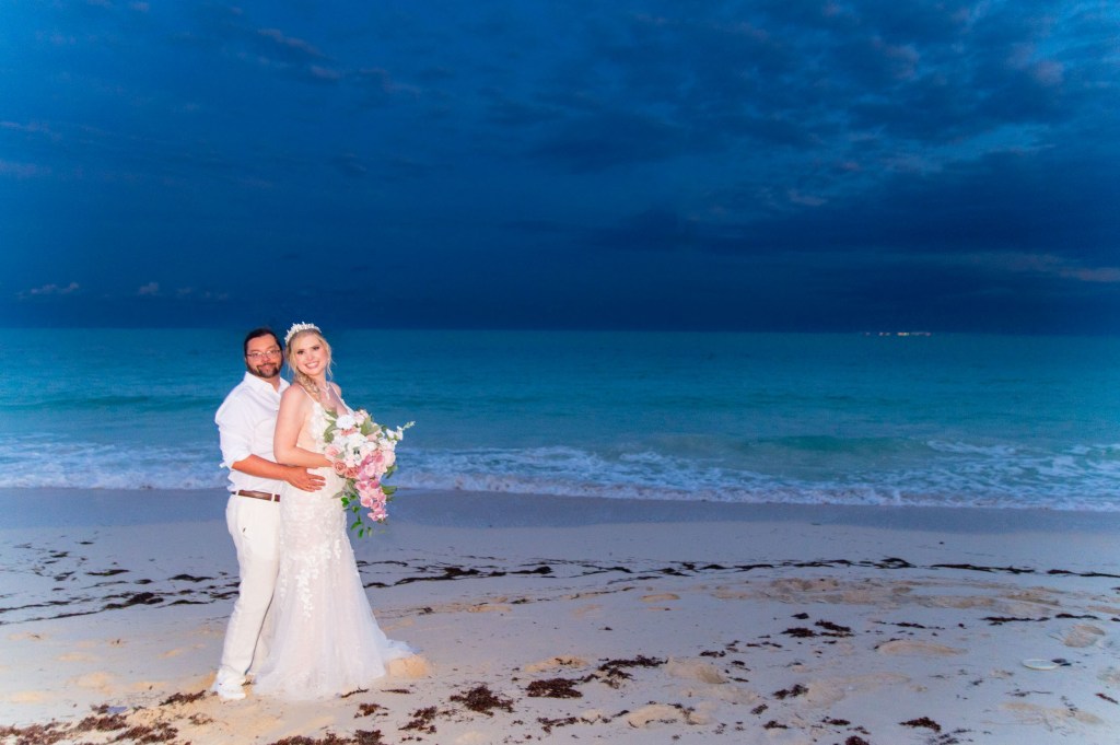 Playa Mujeres became more than a destination. It became a quiet sanctuary where their story could unfold naturally, surrounded by nature’s most delicate colors.